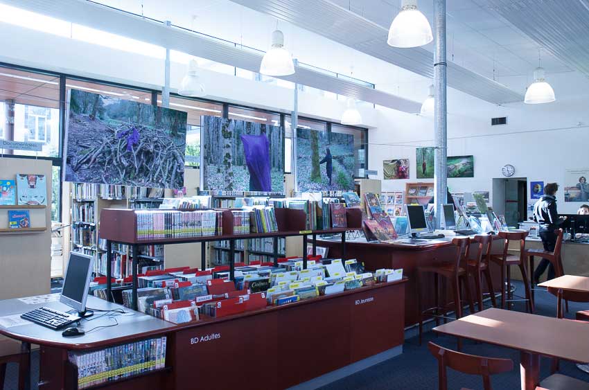 À l’occasion du vernissage, j’ai proposé une installation éphémère dans le patio extérieur de la médiathèque et invité la danseuse et chorégraphe Caroline Denos a réalisé deux temps de performance en résonance avec l’installation et les photographies exposées.