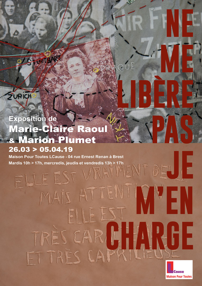 Actuellement, et jusqu’au 5 avril 2019, à la Maison Pour Toutes Lcause, l’exposition « Ne me libère pas, je m’en charge » associe les travaux de Marion Plumet avec les miens.